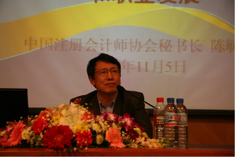 11月5日晚,中国注册会计师协会陈毓圭秘书长应邀参加我校第五届学术文化节,做了题为“注册会计师的职业价值和职业发展”的讲座。讲座吸引了数百名老师和同学的积极参与,京华时报记者到场报道。整个主教学术报告厅座无虚席,洋溢着浓厚的学术气息。